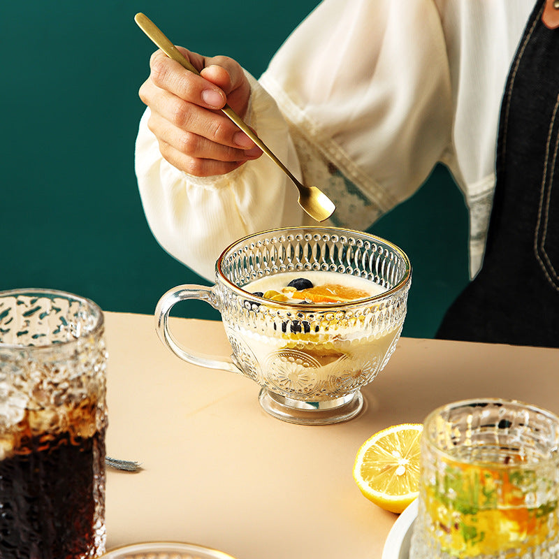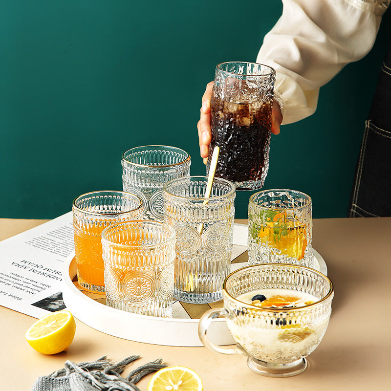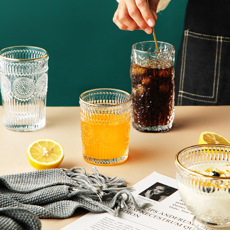 Tree Pattern Cup Japanese Style Gold Rim Glass